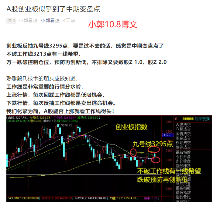 中期行情分水岭看九号线得失,详细分析回看10.8文章《A股创业板到了中期变盘点》